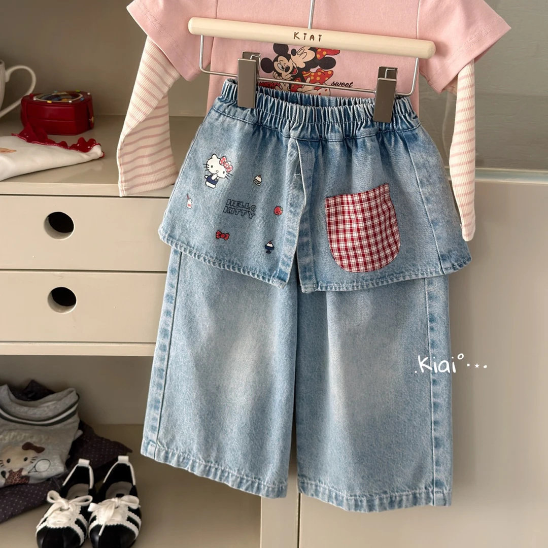 TIMO女童牛仔裤2026春季女童韩版洋气屁帘牛仔裤女...