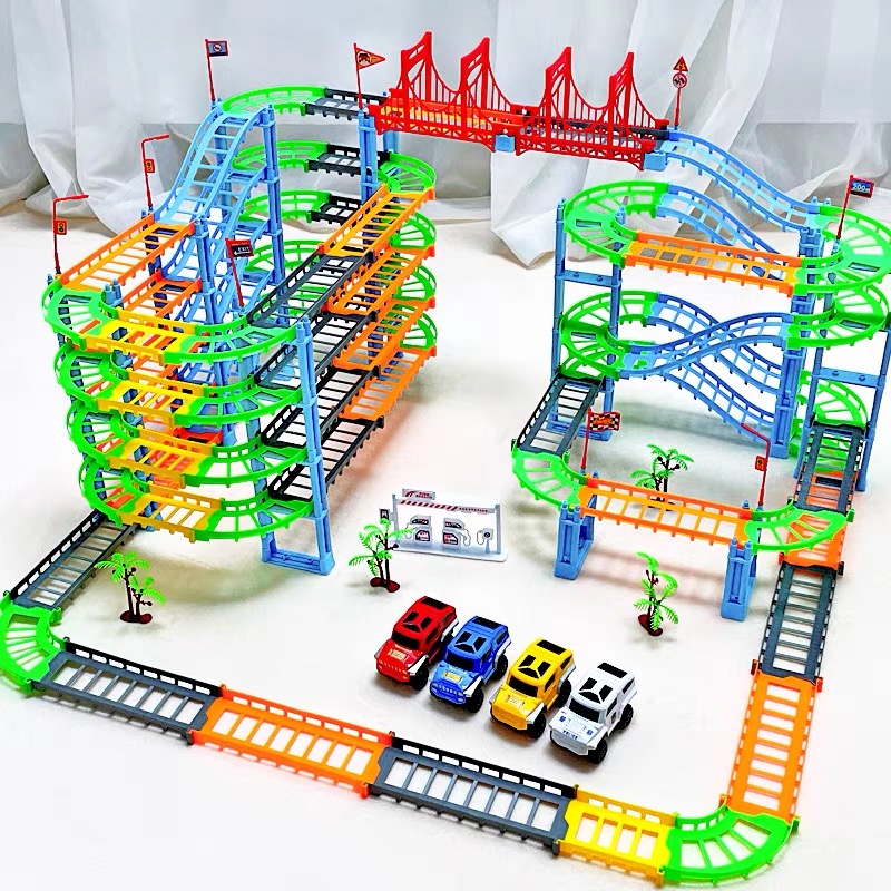 拼装百变多层立体轨道火车玩具电动赛道赛车滑翔跑...
