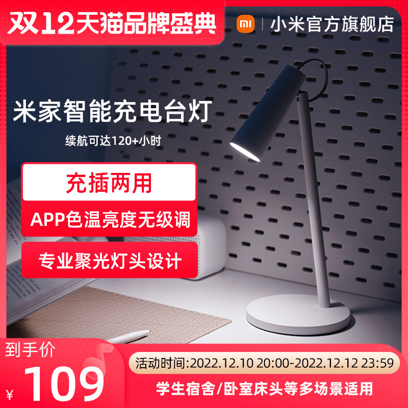小米米家可充电式LED台灯卧室家用学生书桌床头灯轻...