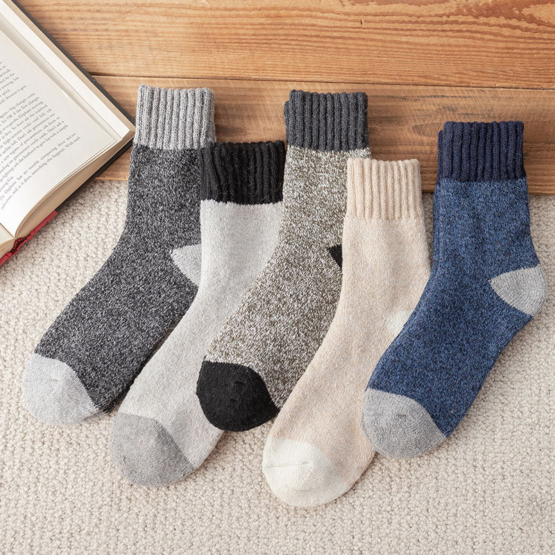 秋冬保暖男士加厚羊毛袜时尚潮流男士中筒袜商务中...