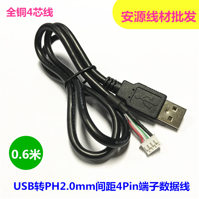 USB转ph2.0mm间距4Pin白色端子数据转接线电路板端...