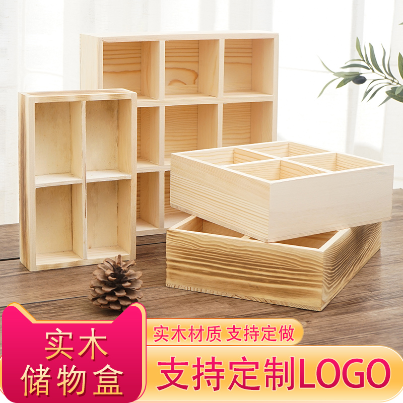 实木九宫格收纳盒松木干果盒无盖木盒多肉植物盒储...