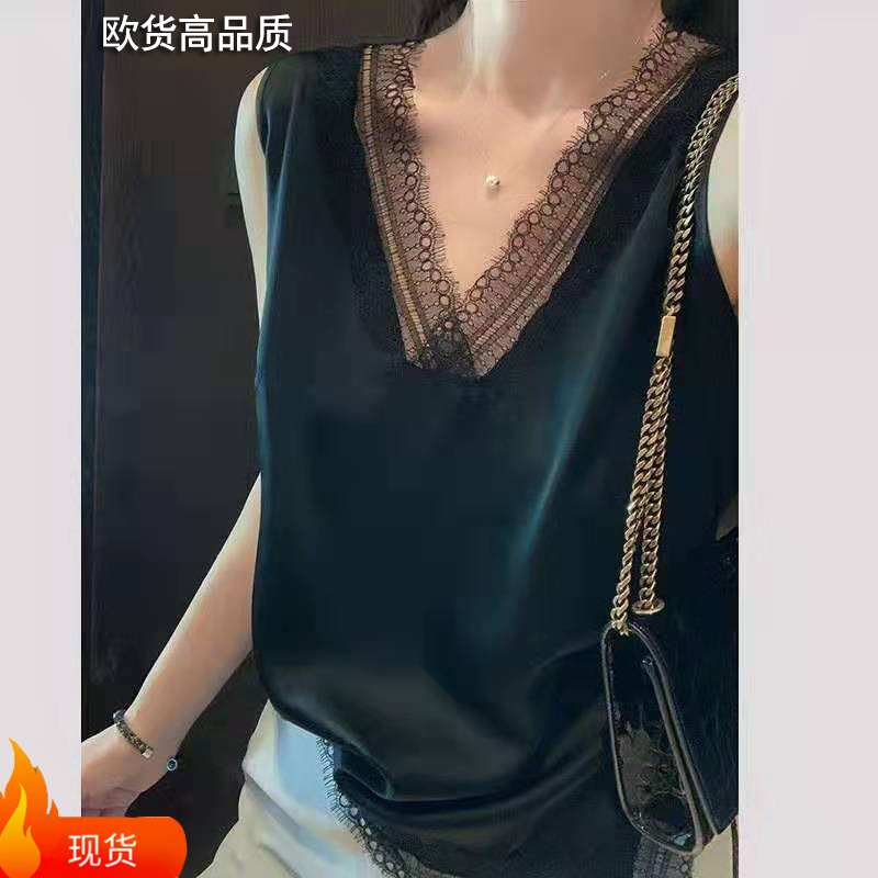 大码200斤亮丝V领吊带背心女外穿胖mm宽松性感蕾丝...