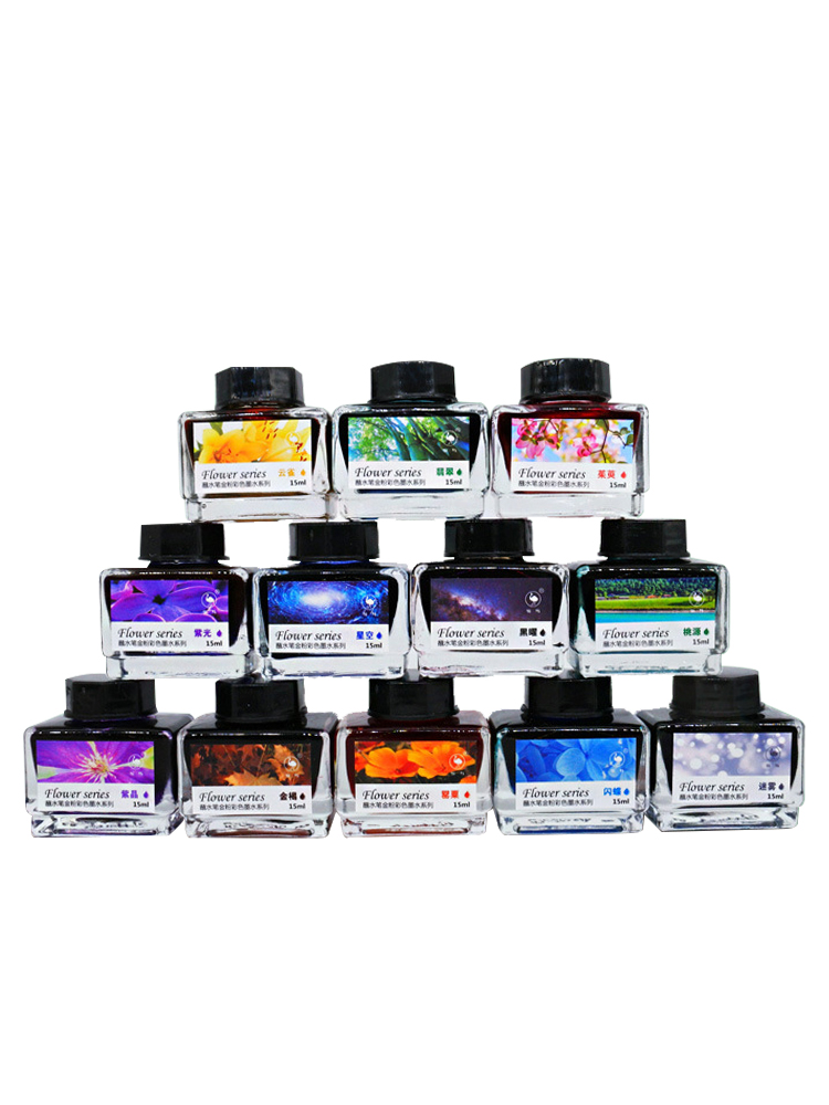 鸵鸟彩色墨水12色套装金粉彩墨学生钢笔蘸水笔用非...
