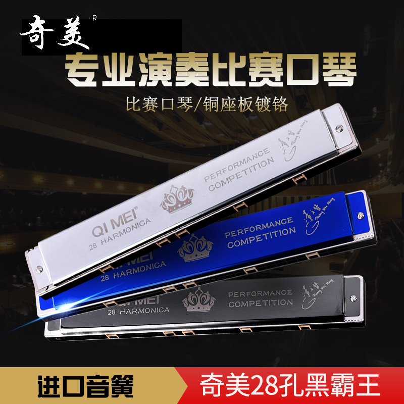 奇美28孔黑霸王口琴高级成人宽音域专业演奏级比赛...