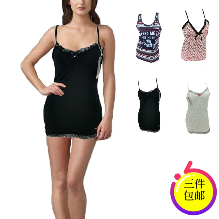 外贸原单家居休闲运动纯棉女背心内衣吊带衫T恤花色...