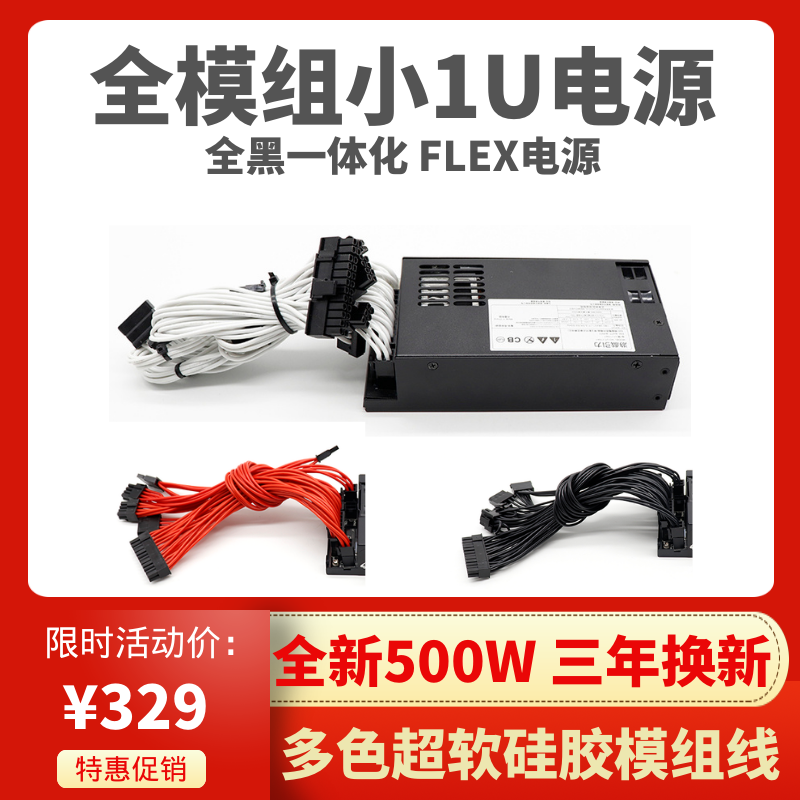 游戏引力500W小1U电源FLEX全模组静音400W迷你ITX机...
