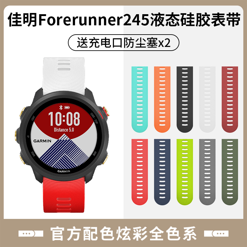 适用佳明Forerunner245M/165液态硅胶表带Garmin Vi...