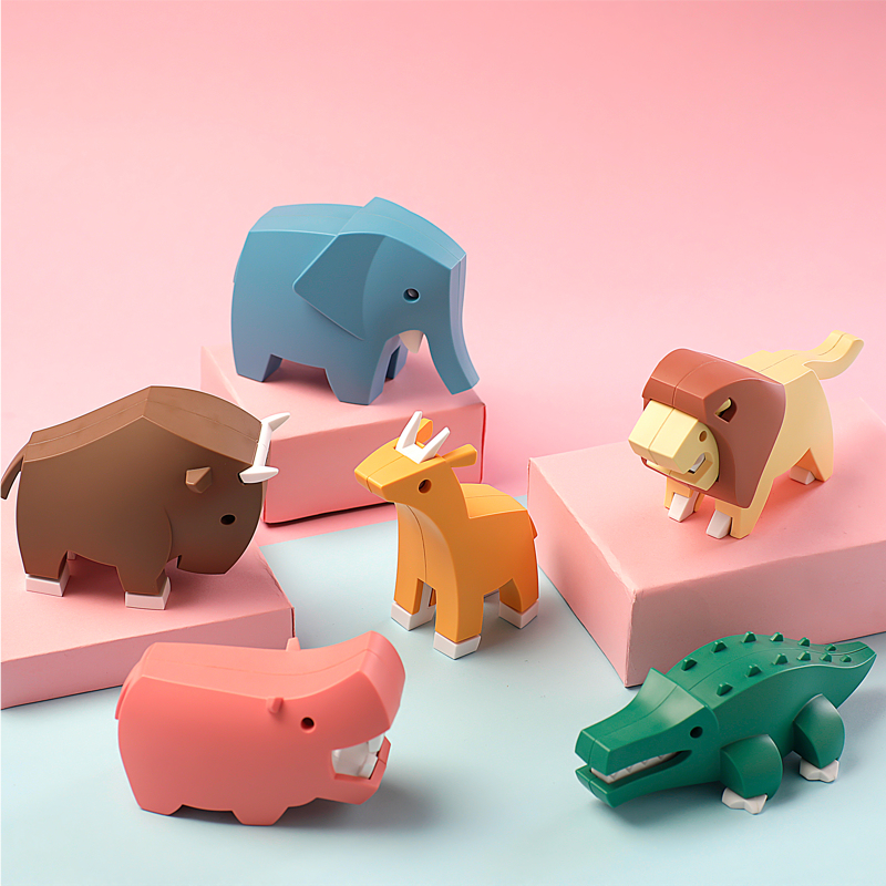 哈福动物玩具组装益智森林野生动物模型大象狮子鳄...