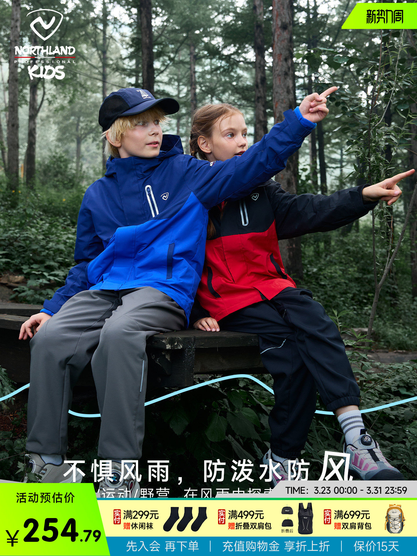 诺诗兰儿童冲锋夹克外衣三合一可拆卸男童大童春秋...