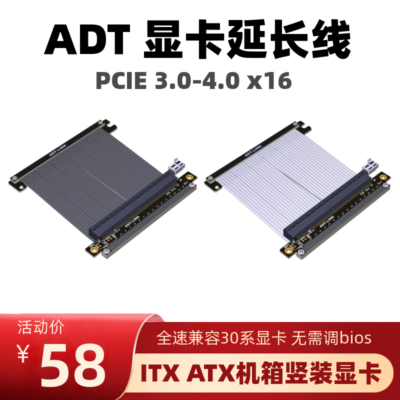 ADT显卡延长转接线PCIE 3.0 4.0 x16 竖装显卡A4ITX...