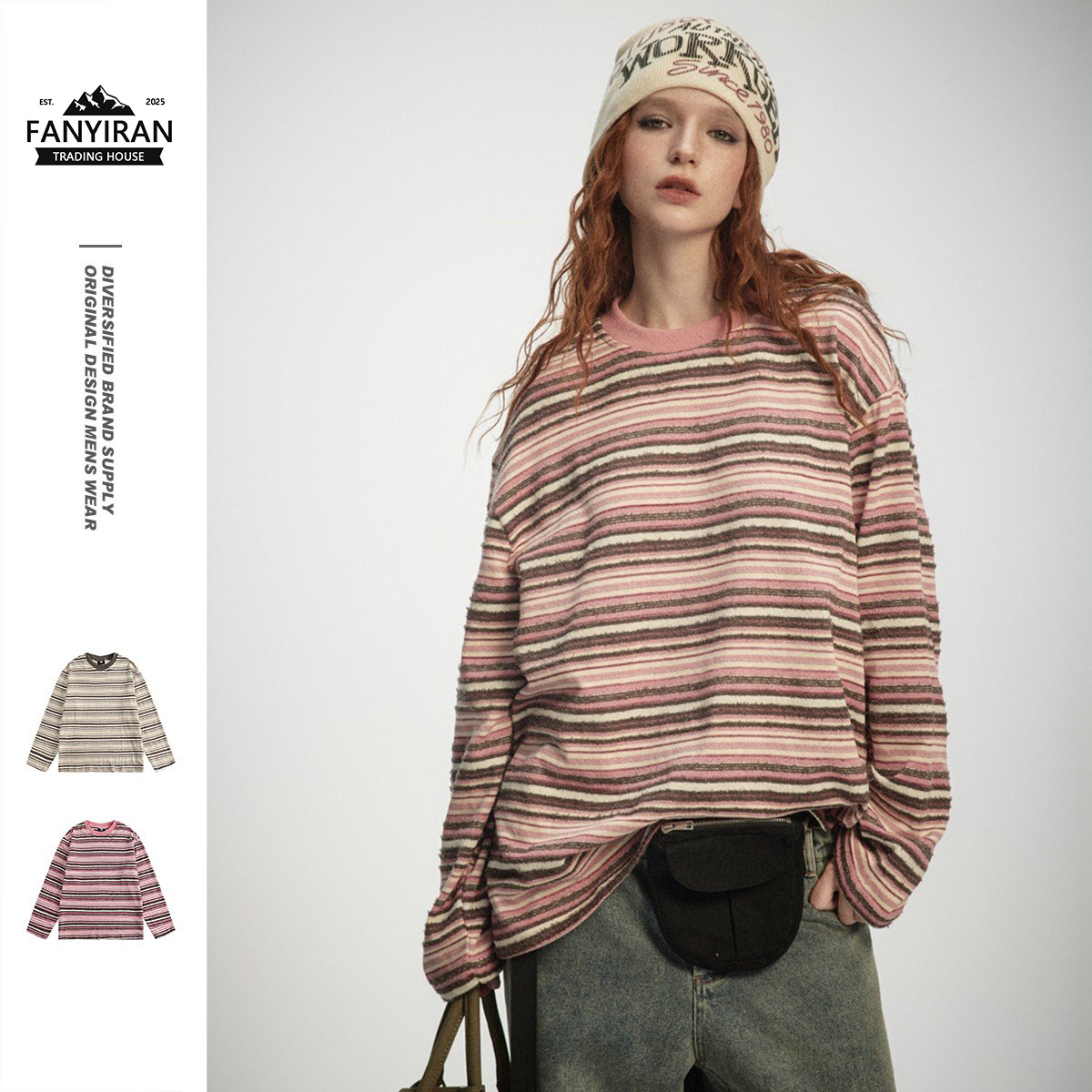 Cannotsurpass条纹长袖T恤潮流男女卫衣内搭打底衫...