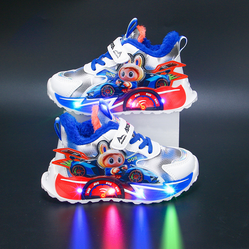 批发带灯男童运动鞋子2025秋冬新款皮面保暖中小童...