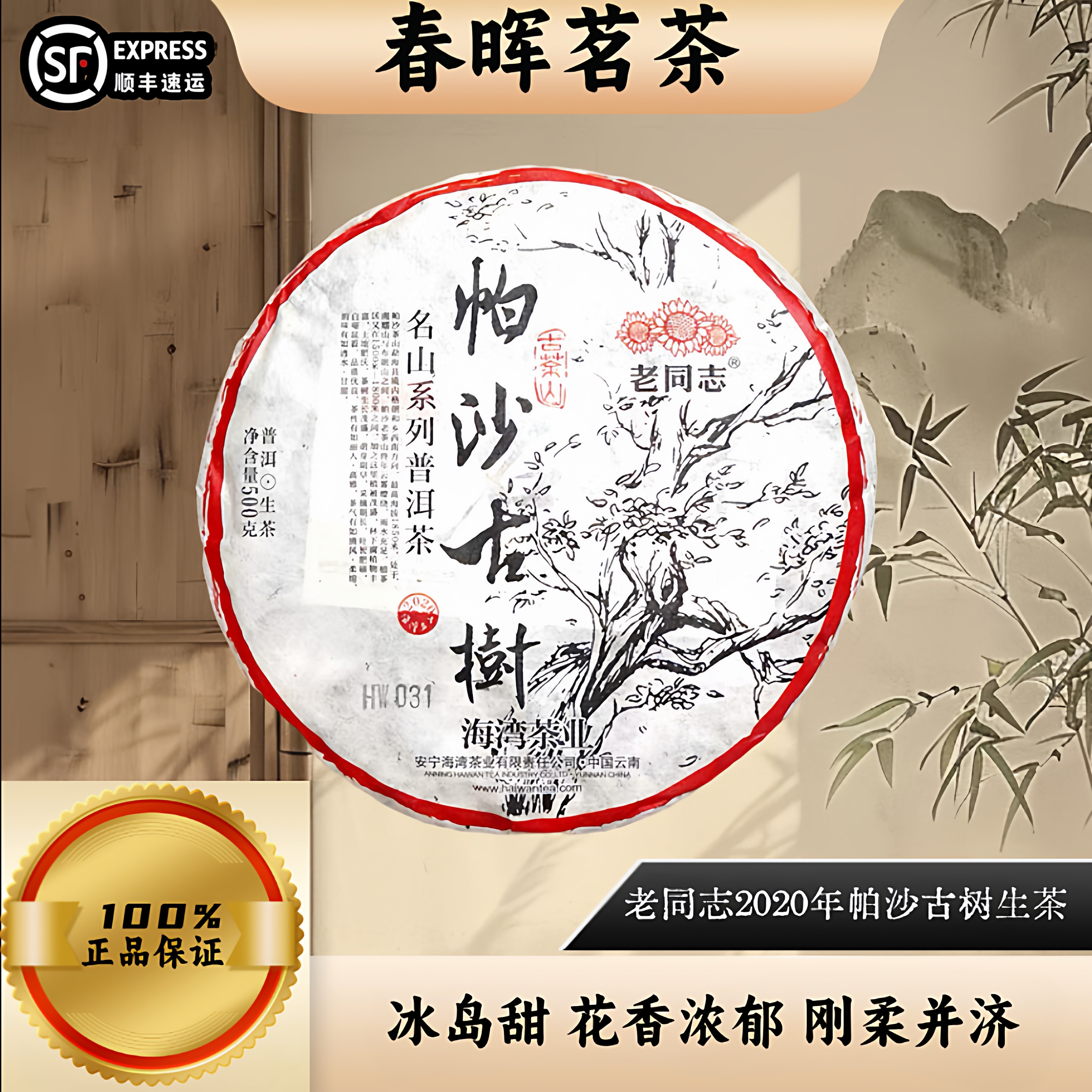 老同志2020年帕沙古树普洱茶名山生茶500克/饼