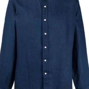 经典版型藏青色亚麻布衬衫