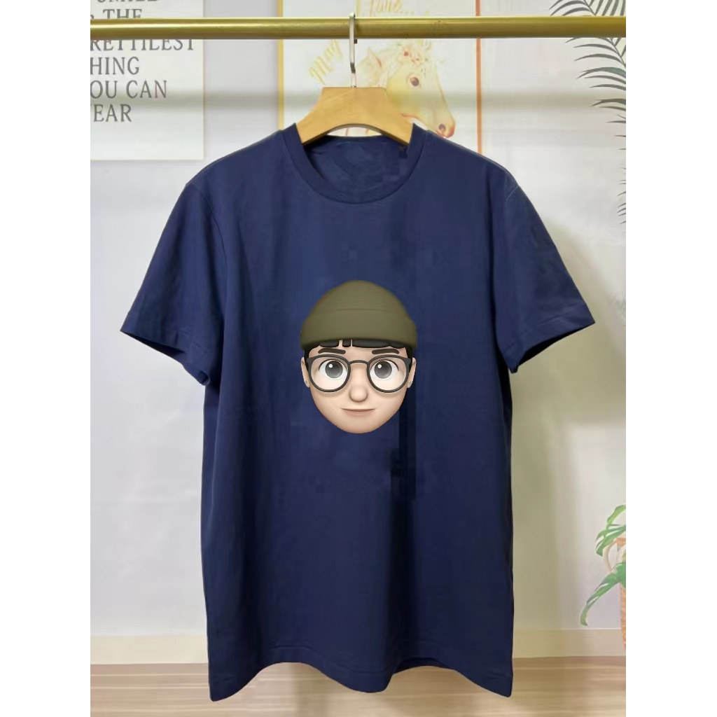 经典版型深蓝色烫画圆领T恤