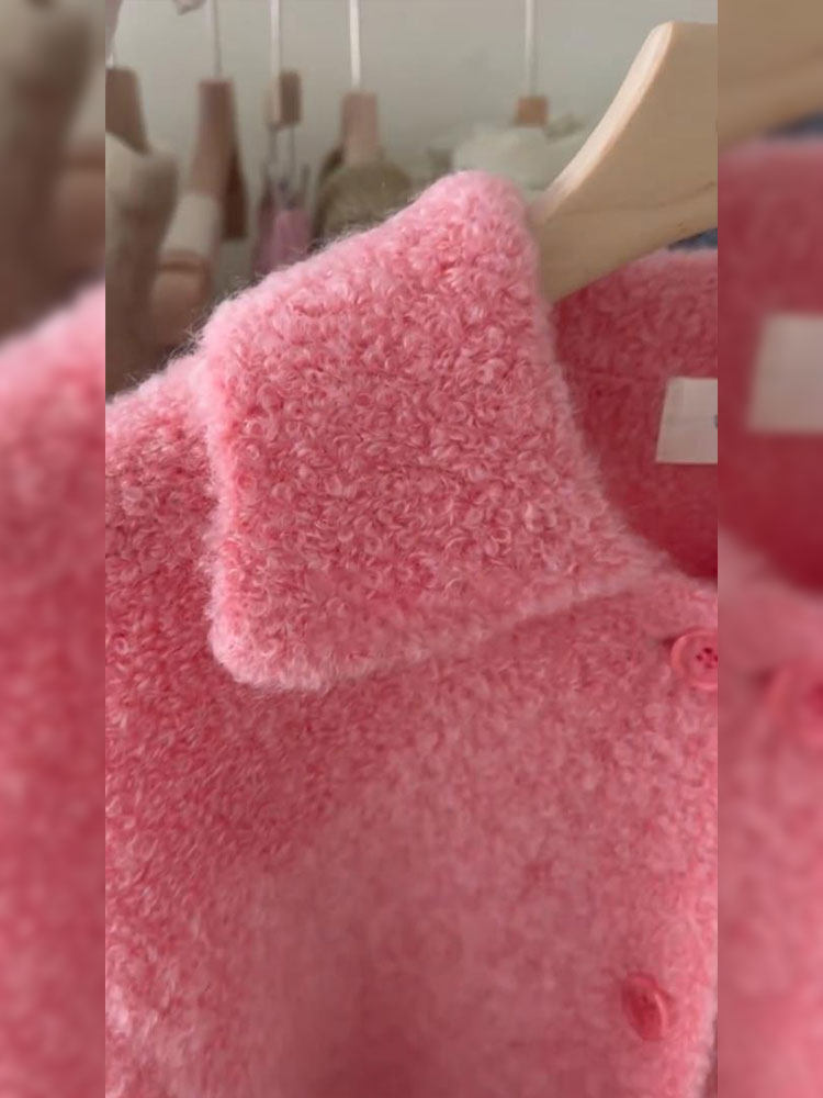 穿出高颜值~小香风高级POLO领蜜桃粉色短款浣熊绒毛...