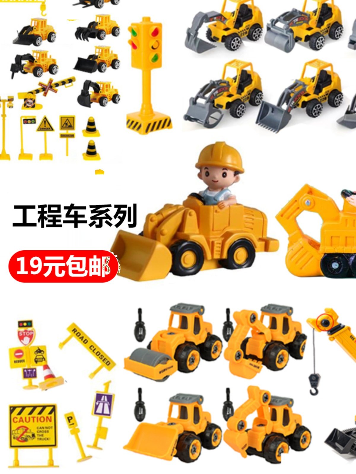 挖机蛋糕摆件推土机挖掘机装饰工程车路障吊塔汽车...
