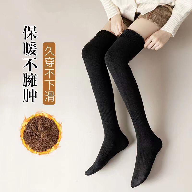 过膝袜子女高筒袜秋冬季加绒加厚保暖大腿咖色冬天...