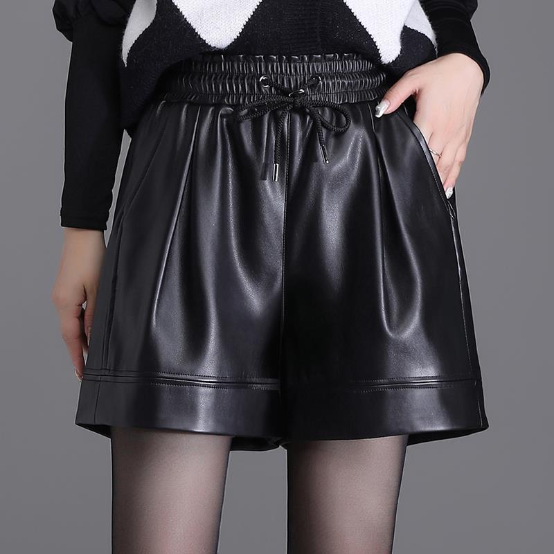 时尚短裤2022新款宽松直筒阔腿裤pu皮裤a字休闲短裤...