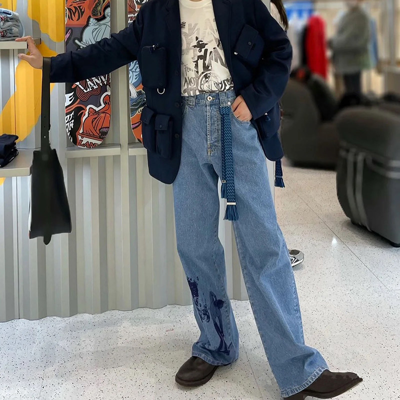 Freelts 22SS CLEANFIT风格印花宽松直筒阔腿水洗牛...