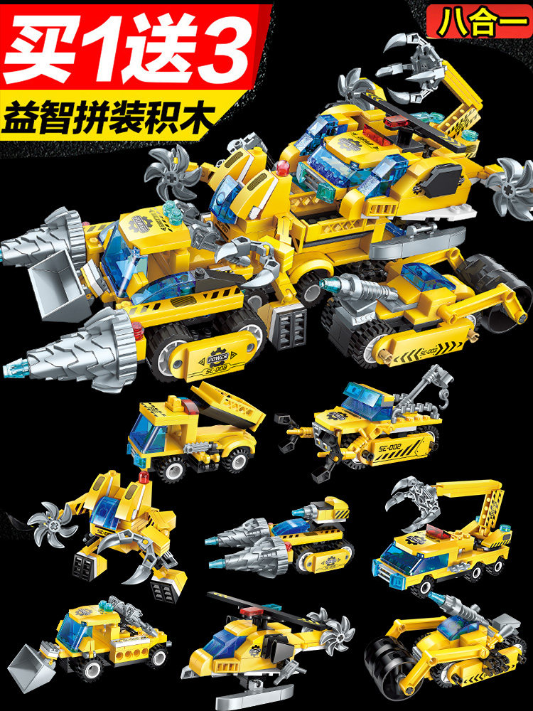 启蒙积木拼装玩具益智工程车铲车锋影战车8合1智力...