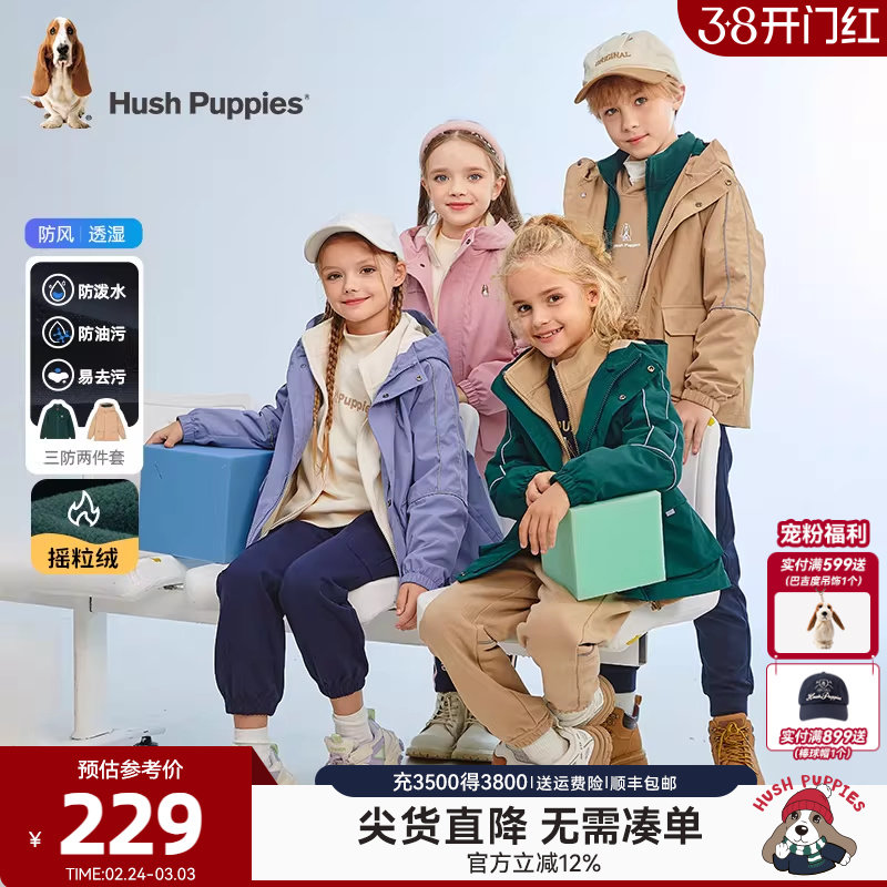 一衣三穿暇步士童装儿童可拆卸外套秋冬新款男童加...
