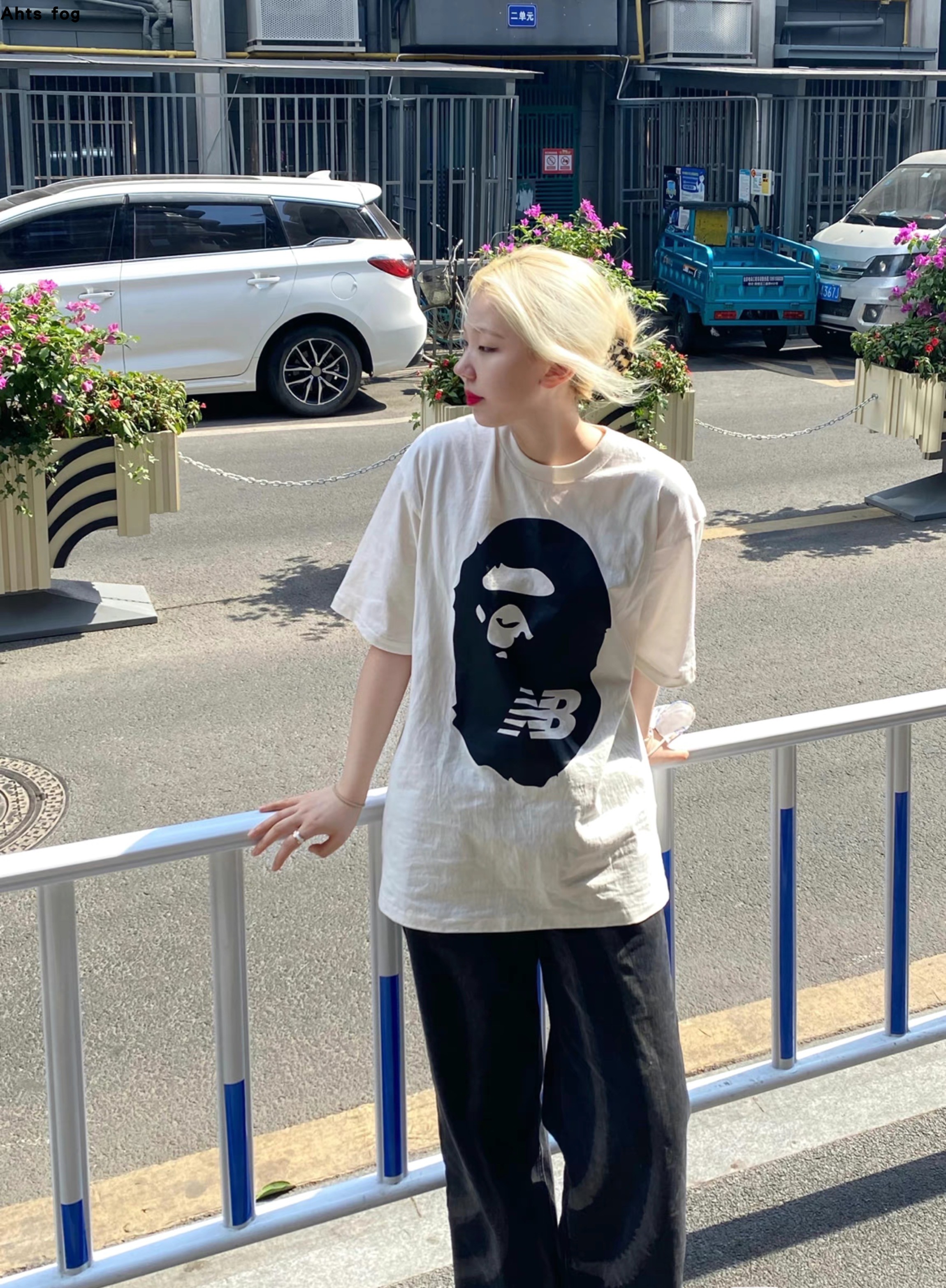 2023新款夏季Bape联名nb基础短袖T恤男女圆领上衣内...