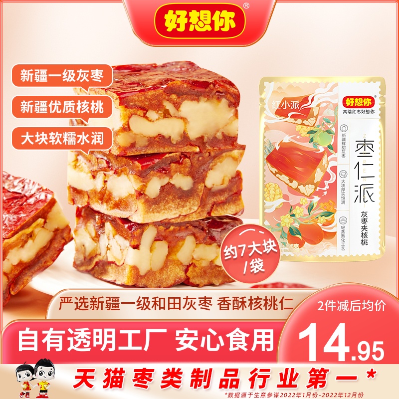 【好想你_枣仁派198g】枣夹核桃红枣夹心灰枣新疆特...