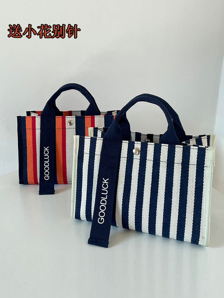 日系小众托特包条纹时尚手提大容量A4文件帆布包防...