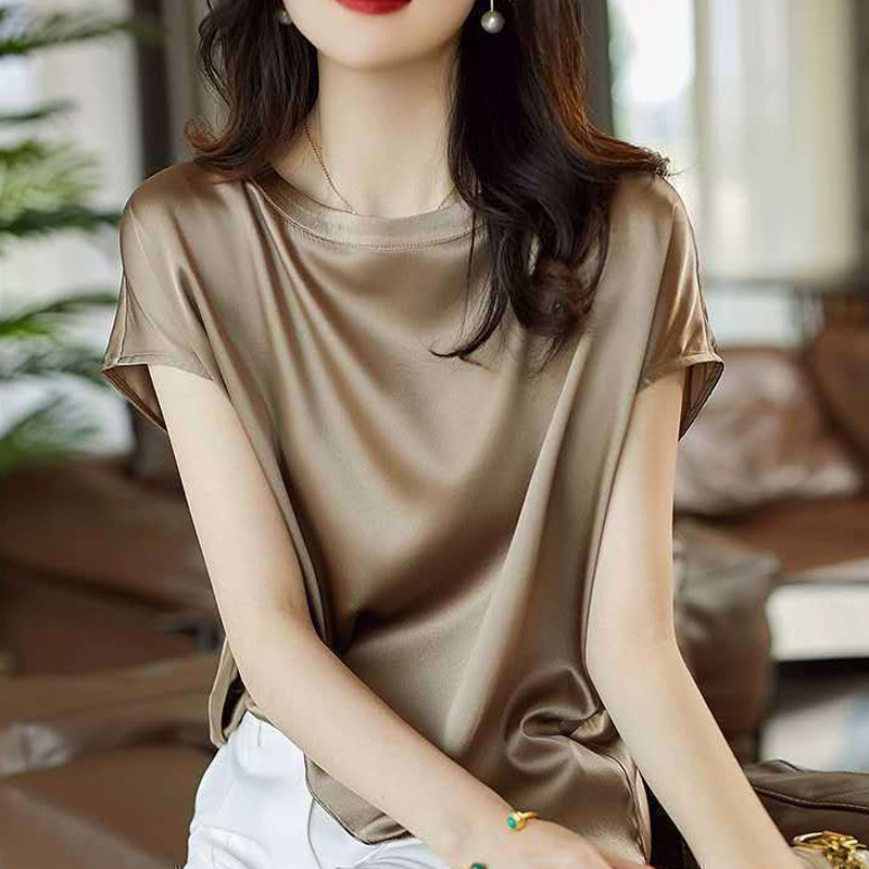 缎面醋酸真丝短袖t恤女丅2023夏季新款欧货女装高端...