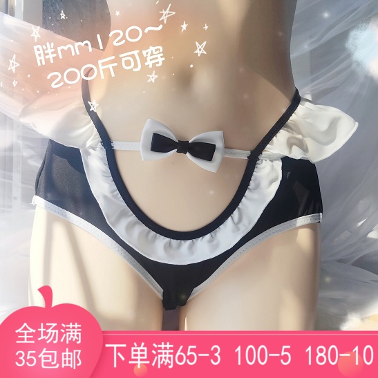 加大码日系木耳边二次元女仆可爱兔尾巴性感三角裤...