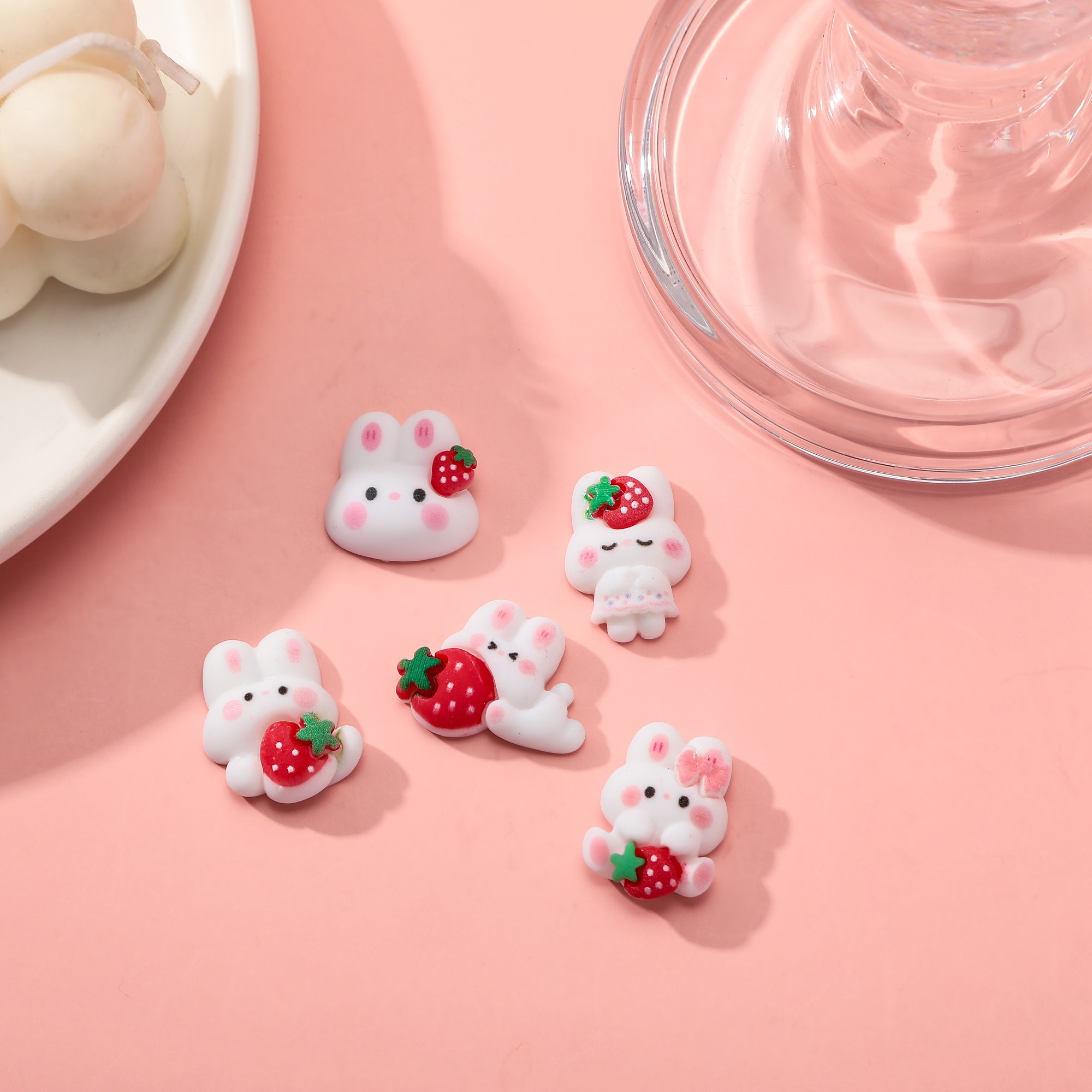 甜美卡通兔子树脂diy材料仿真草莓手工发饰胸针奶油...