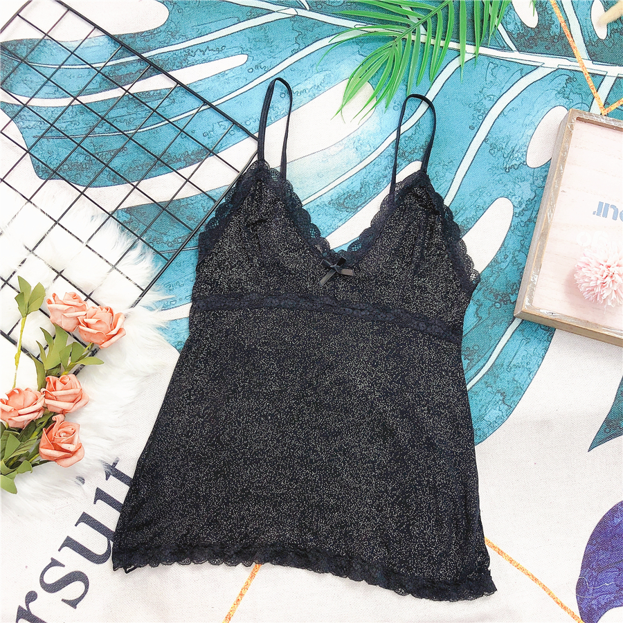 L481 新品黑色系亮点吊带背心上衣深V单层美背内档...