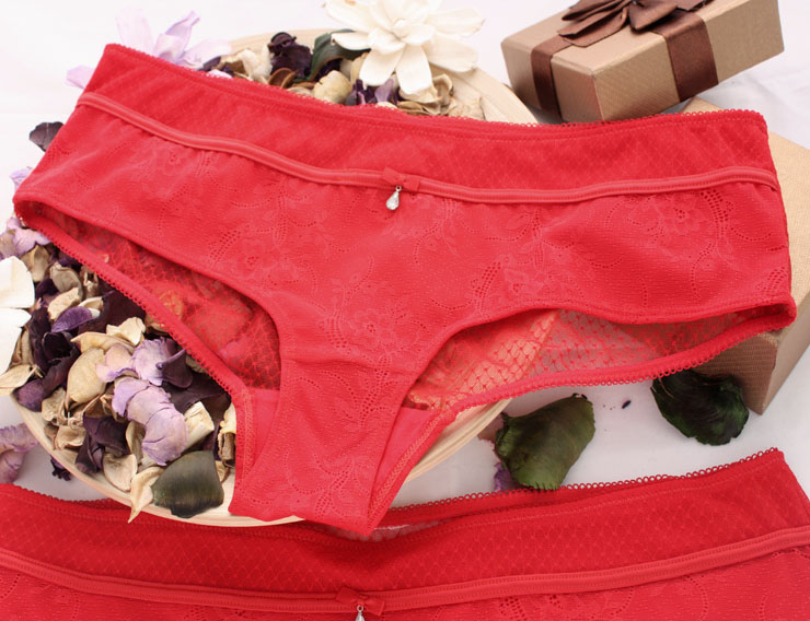 红色特大码半透明网纱包臀小平脚裤/女士内裤XL XXL