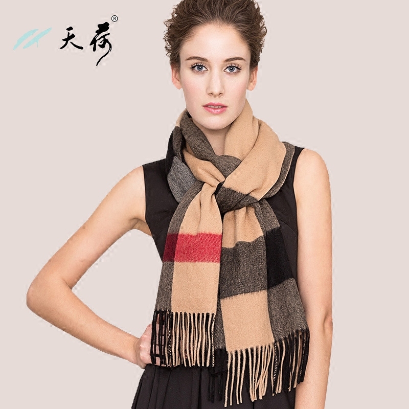 天荷羊绒羊毛围巾女加厚情侣秋冬长款格纹保暖披肩