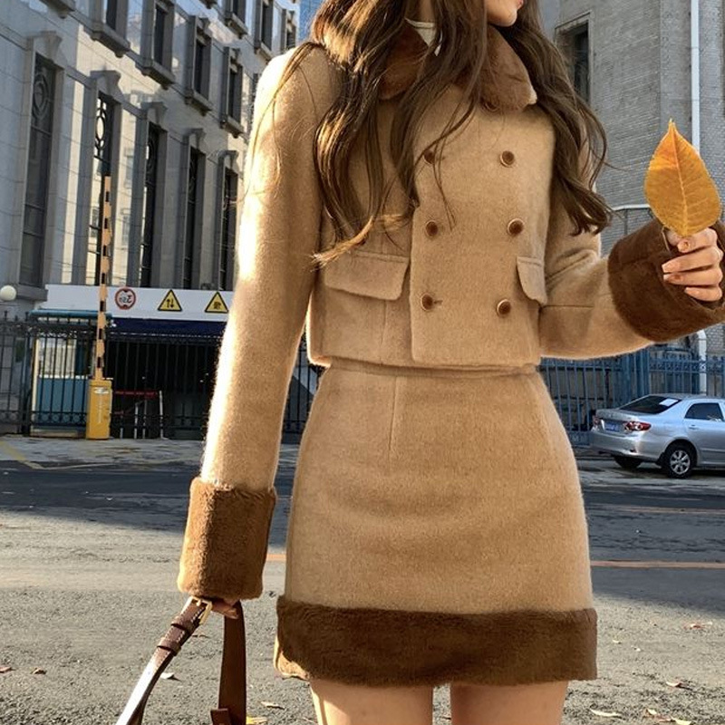 冬日恋歌 冬季2023毛呢两件套装女气质Polo领韩版纯...