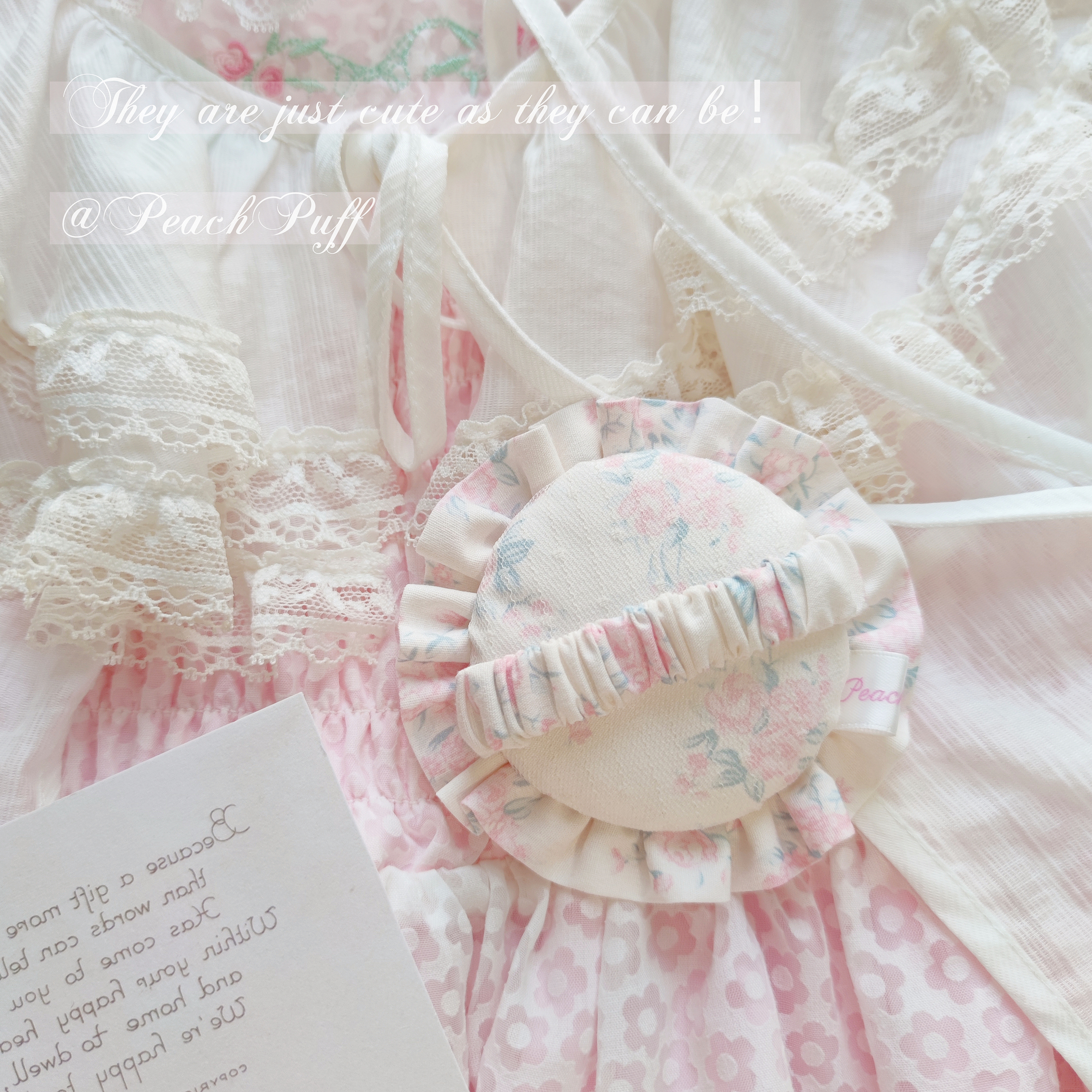 PeachPuff 可爱软乎花边粉扑手持镜 原创少女物手作...