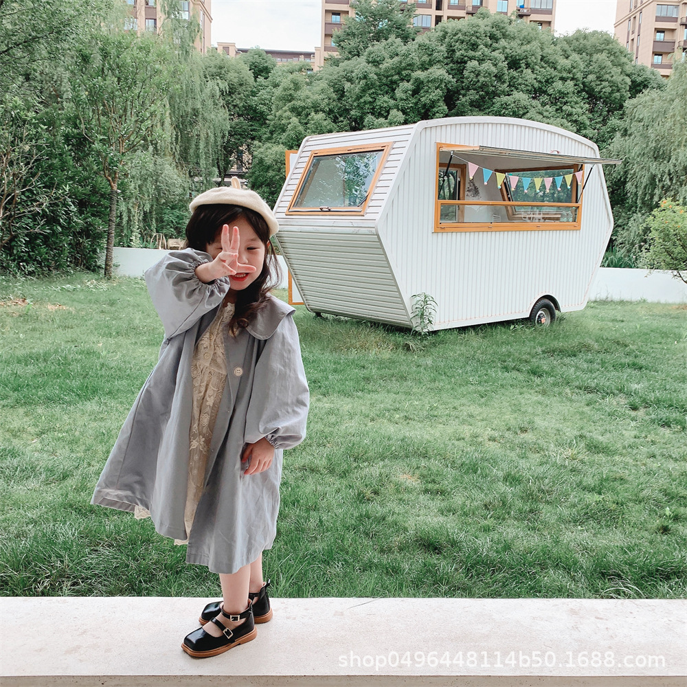 女童风衣21秋季新款中小童娃娃领风衣中长款外套韩...