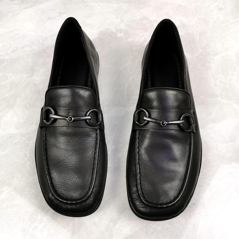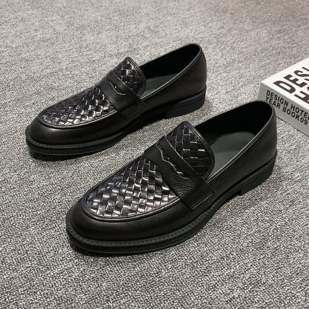 男皮鞋牛皮编织休闲鞋厚底一脚蹬正装商务鞋子2023...