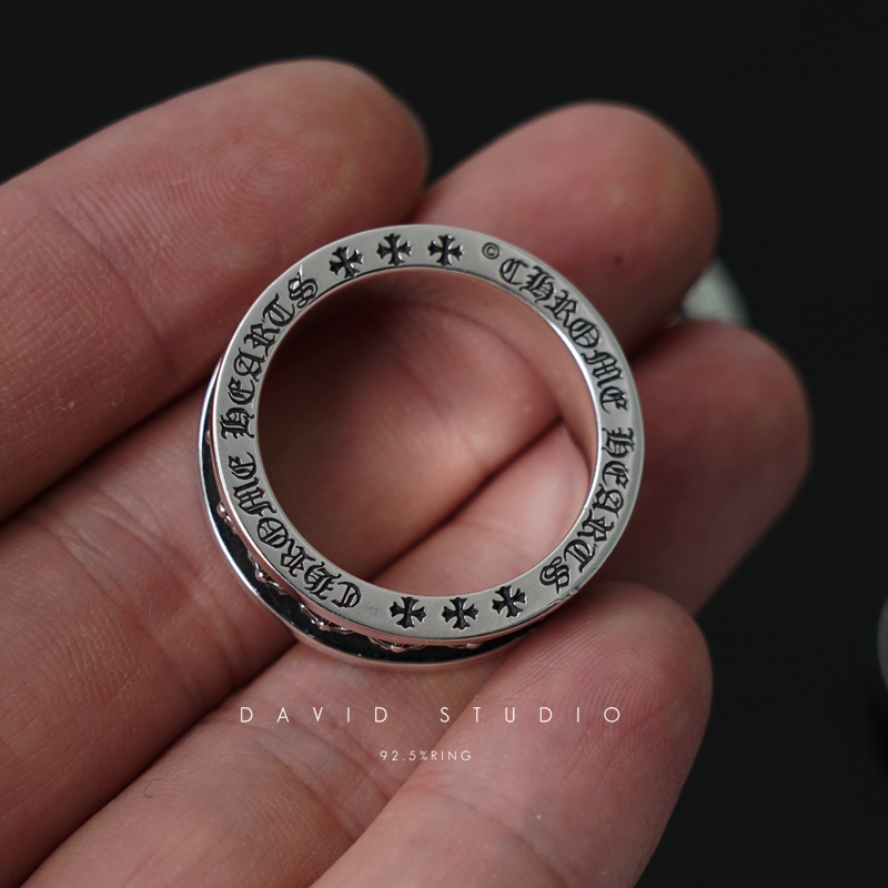 david S925纯银黑圈十字架哥特文做旧情侣戒指指环...