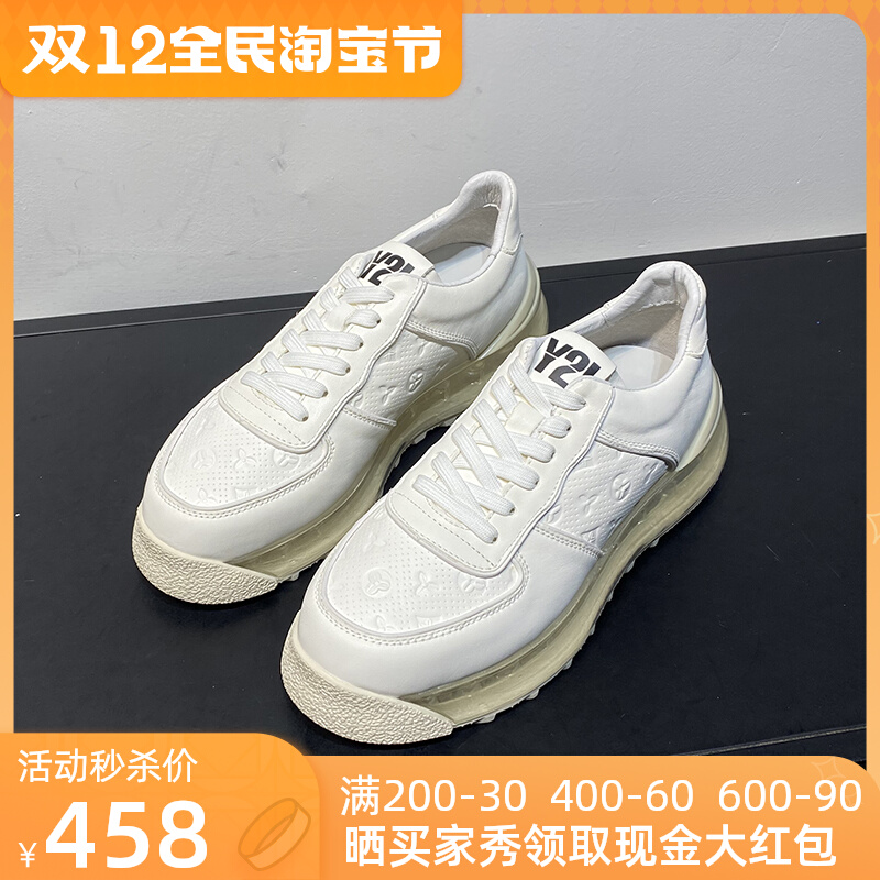 2022春季新款男鞋气垫底运动休闲鞋百搭真皮小白鞋...