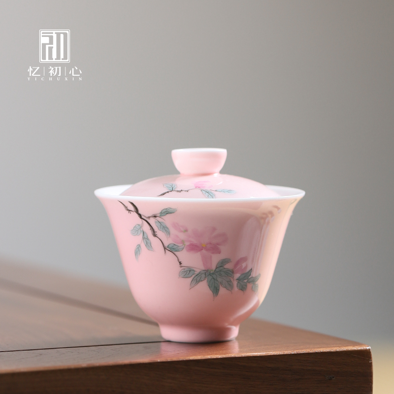 粉色盖碗景德镇手绘牵牛花陶瓷女士粉色功夫茶泡茶...