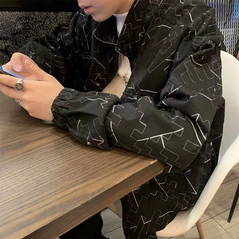 新品cavempt黑色满印印花噪音拉链夹克ce外套男 日...