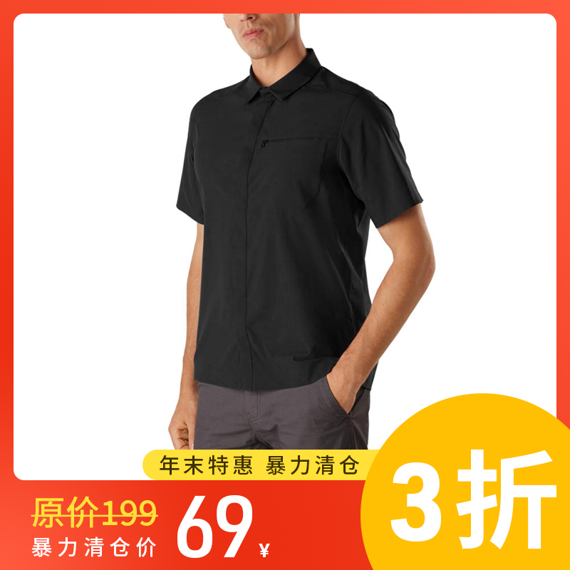 专利抗菌纱线男短袖夏季休闲黑色衬衫柔软丝滑防晒...