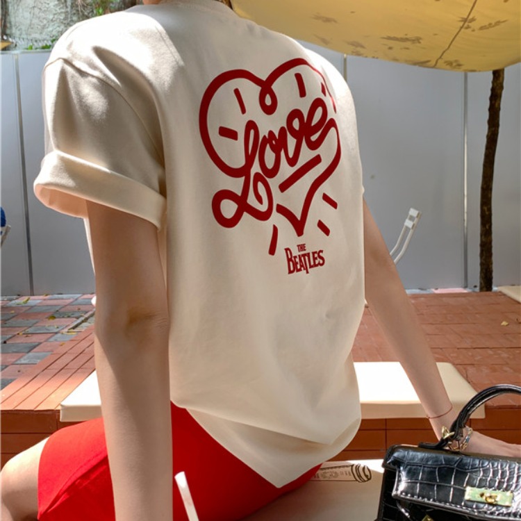夏2022短袖正肩T恤女显瘦后背印花独特设计小众别致...