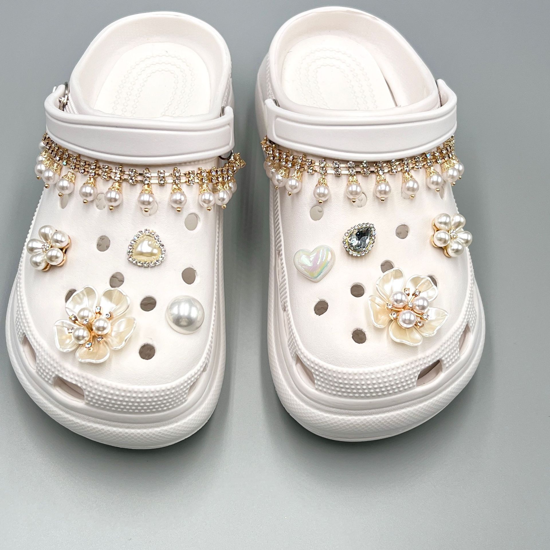 Cross珍珠链条洞洞鞋鞋扣diy鞋花配件小香风配饰链...