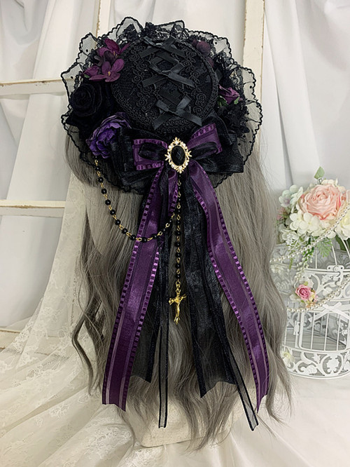 原创手作Lolita哥特搞死华丽优雅茶会洛丽塔扁帽礼...