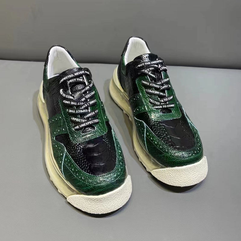 新款鸵鸟皮休闲鞋男士时尚潮流真鸵鸟脚皮运动鞋百...