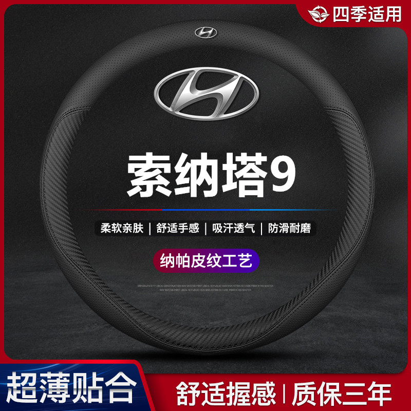 适用索纳塔九索9代真皮方向盘套北京现代车把套15-1...